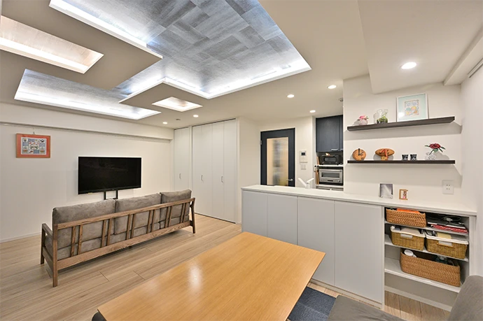 意匠的な工夫によってリビングの天井の圧迫感を解消することで、ご夫婦のこだわりのデザインができました。暮らしをより楽しめる空間に生まれ変わり、大変嬉しく思います。