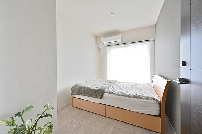 洋室(2)は、主寝室です。寝室らしい落ち着いた雰囲気となるよう、グレージュのアクセントクロスを採用しました。