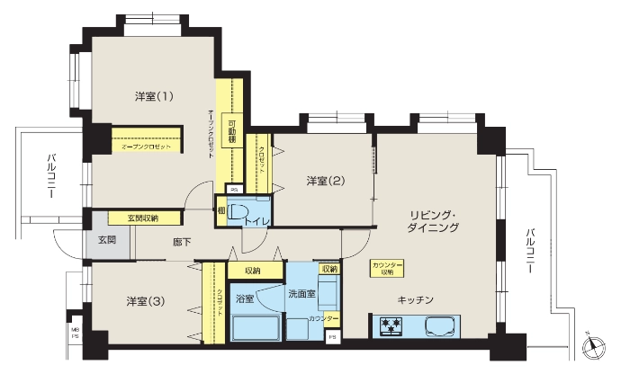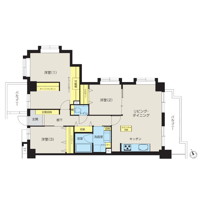 - 洋室収納、洗面室収納、廊下収納、玄関収納、洗面室カウンター、カウンター収納