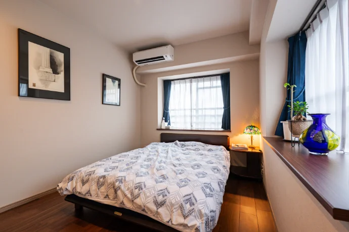 洋室(1)のベッドスペースにはインナーサッシを採用し、断熱性能を向上させました。快適で心地よいプライベート空間が完成しました。
