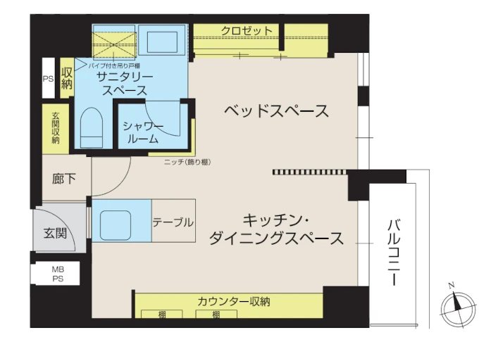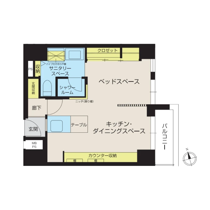 - キッチン・ダイニングスペース収納、ベッドスペース収納、玄関収納、ニッチ(飾り棚)、ダイニングテーブル