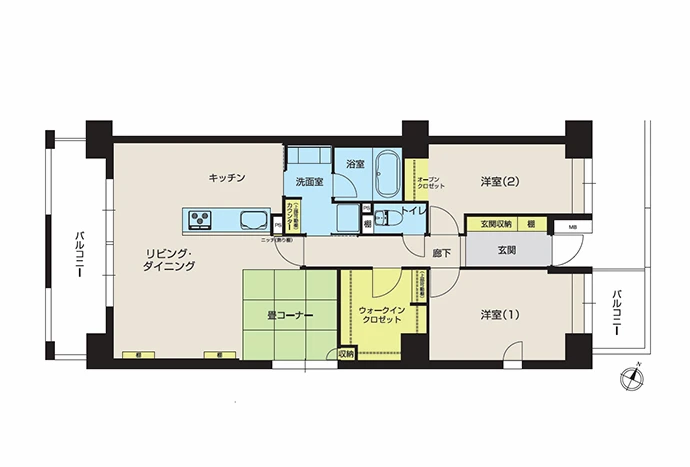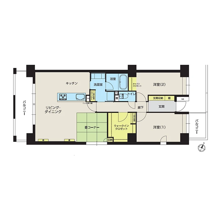 - 洋室を2部屋確保し、一つは将来子ども部屋として使えるようにしたい