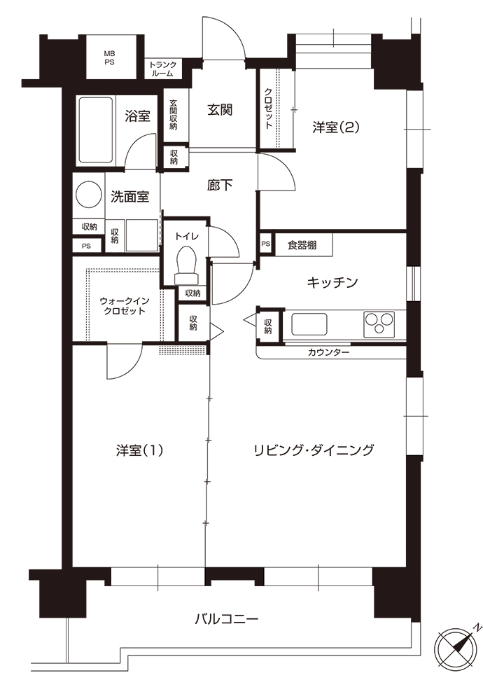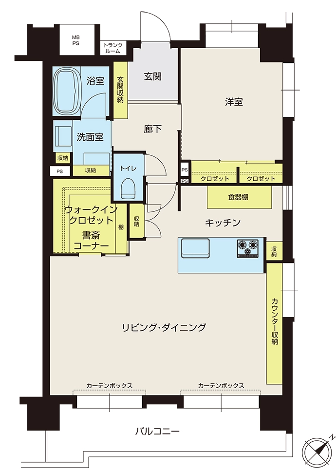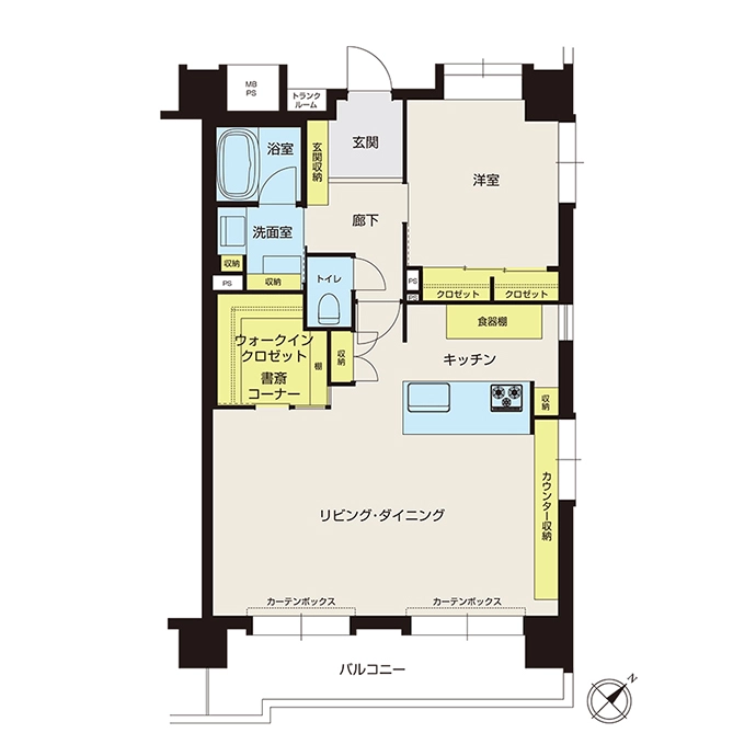 - リビング収納、カウンター収納、キッチン収納、洋室収納、玄関収納、洗面室収納、ウォークインクロゼット