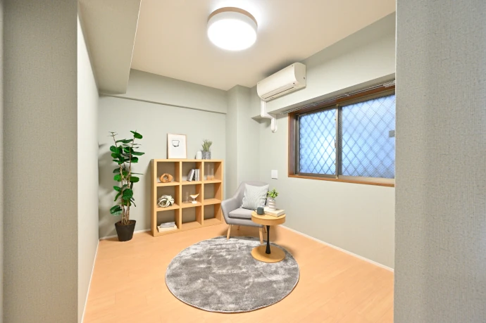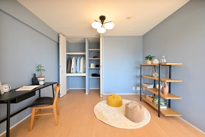 お子さまが帰省された際に使用している洋室(2)は、将来は書斎としても活用できるよう内装を一新し、お子さまが落ち着ける雰囲気の多目的な空間に仕上げています。