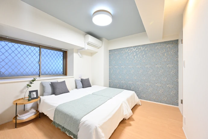 就寝スペースとして使用される洋室(1)は、落ち着いて過ごせる空間となるよう整えました。