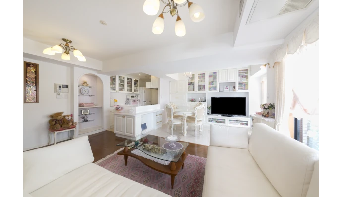 新築時からこちらのマンションにお住まいのYさまご夫妻。クラシカルな家具やインテリアに囲まれた、ロマンチックな暮らしに憧れていらっしゃいました。そこで、ご主人さまの定年を機にリフォームを決断。思い描いた暮らしを実現したいと、ヨーロピアンテイストを大胆に取り入れたリフォームをオーダーされました。さらに弊社は、Yさまのお好みやご趣味などを詳しくうかがい、白・金・ピンクをテーマカラーとしてバラをモチーフにするなど、細部に至るまでヨーロピアンを意識したプランをご提案。リビングの拡張やキッチンのオープン化、収納の増設などを行い、統一されたデザインのなかで、暮らしやすさも備えたお住まいとすることができました。