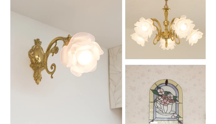 内装のテーマはバラ。照明器具やクロスなど随所にバラのモチーフを取り入れ、細部まで統一感のある素敵なインテリアを実現しました。