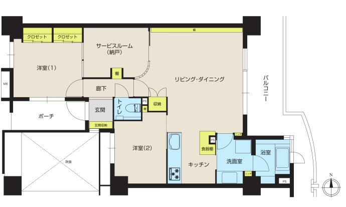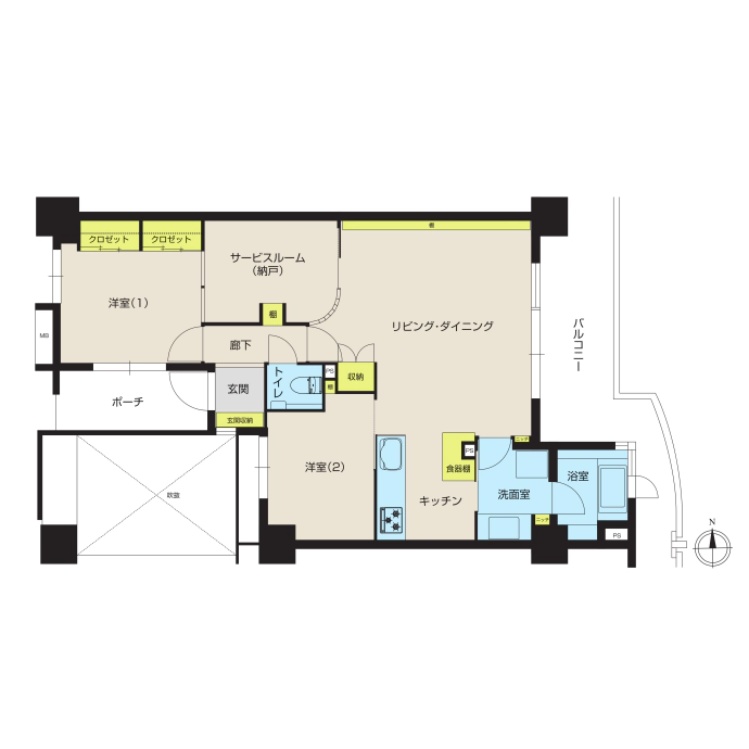 - 洋室収納、廊下収納、玄関収納、ニッチ(飾り棚)、食器棚
