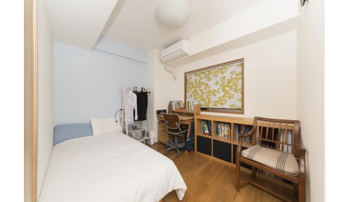 Nさまは、お部屋の通風や採光にお悩みだったので、解決手段として室内窓やガラスブロックの導入をご提案しました。また、透明素材を使った建具を採用したことも、工夫の一つです。バルコニーから離れた洋室(1)でも朝の光を感じていただけるようになり、お喜びいただけました。アクセントクロスの色づかいや小物の置き方など、奥さまのセンスがとてもよく、私も大変勉強になりました。