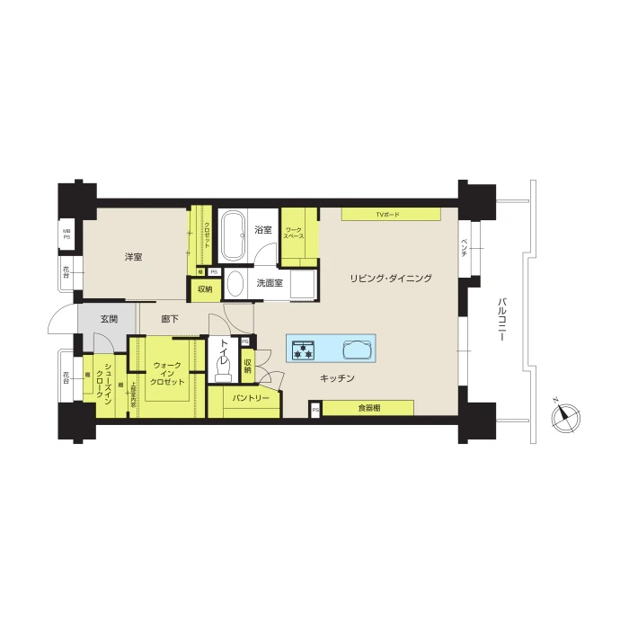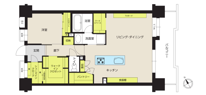 - ウォークインクロゼット、ワークスペース、食器棚、パントリー、シューズインクローク、廊下収納、棚、TVボード