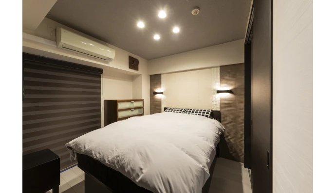 寝室のヘッド側の壁⼀⾯には調湿建材を施⼯し、さらにインナーサッシを設置したことで、⻑年悩まれていた結露の問題が改善しました。照明には調光機能とリモコン付の照明を採⽤し、シーンに応じて光の強さを⾃在に調整できる、快適で機能的な空間に仕上がっています。