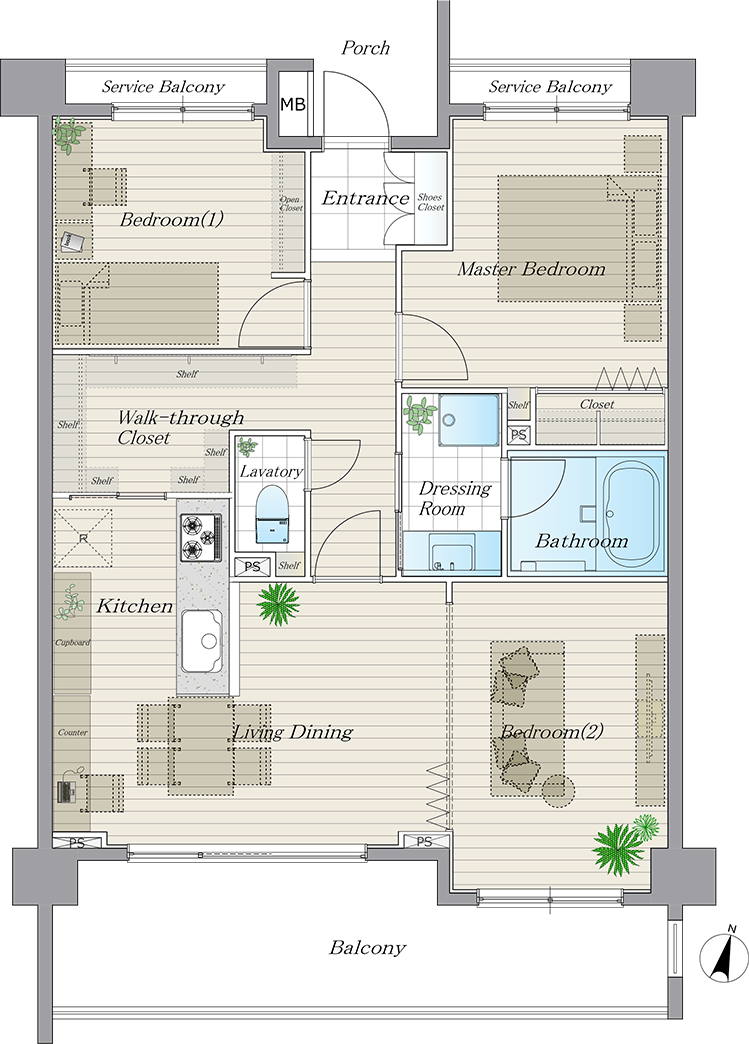 廊下側からもアクセスできるパントリーを設けています。 - Master Bed Room