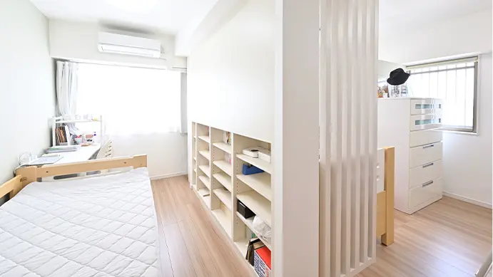 既存の部屋を仕切って新しい子ども部屋を増設します。リビングやダイニングの一部を仕切って子ども部屋を増設することもできます。
