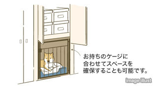 ドアや壁に、自由に行き来できるくぐり戸付きの出入り口を作ってあげませんか。ペットのトイレがリビングの外にある場合には、必要な時にすぐに行けるので、ストレスも軽減します。