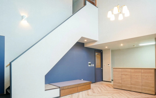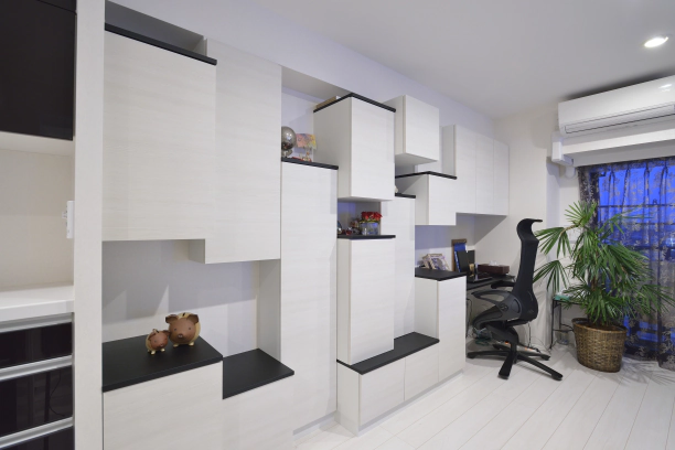 床の色に合わせて部屋の内装をカラーコディネートしていただき、素材についても色々とご提案いただきました。また、収納量が増えたことで生活感が見えることなく暮らすことができるようになりました。荷物がすっきりしたことで、ロボット掃除機がスムーズに家中を掃除できるようになりとても満足しています。