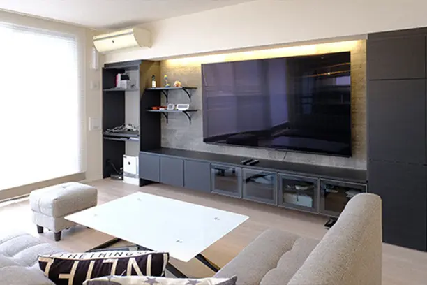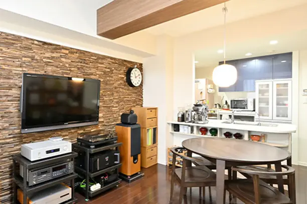 入居までの期日が短かったため、まずは入居して落ち着いてからリフォームしようと考えていました。しかし、大京のリフォームとの打ち合わせはとても素早く、スムーズだったので信じてお任せすることができました。仕上がりにも大変満足しています。ウッドパネルを壁一面に設置していただいたおかげで、リビング・ダイニングを広々と使ってテレビとオーディオを贅沢に楽しめるようになりました。
