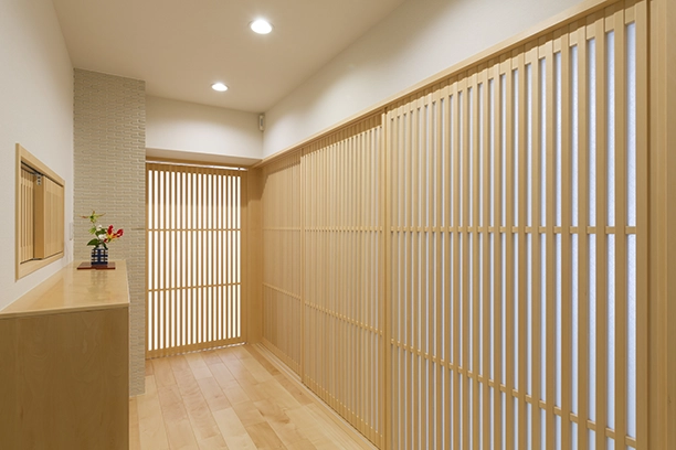 本当に住みたい「和の家」にしたかったので、プランナーさんとの打ち合わせでは、素材やデザインについて納得いくまで相談できたのが嬉しかったです。とくに格⼦や襖の柄選びは印象深く、完成した空間は、和の美しさと暮らしやすさを兼ね備えた、⼼から落ち着ける住まいになりました。⽞関を開けた瞬間に広がる⽊の⾹りや、やわらかな光が通る空間に、毎⽇幸せを感じています。