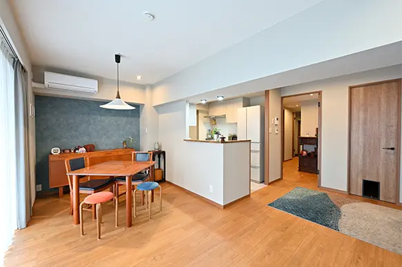 エアコンの設置は、以前、他の工事業者さんに相談した際に無理だと言われてしまい、諦めかけておりました。引っ越しも検討していましたが、今回、素晴らしい解決策をご提案いただいたことで、愛着のある住まいに住み続けることができて本当に感謝しています。また、プランナーさんの豊富な知識や経験をもとに、インテリアや動線などについても、希望に沿った素敵なプランをご提案いただきました。既存の内装をそのまま生かした箇所もありますが、新しい部分と違和感なくなじむよう、住まい全体をコーディネートしていただけたと思います。家事のしやすさも格段に向上し、家で過ごす時間が楽しくなりました。