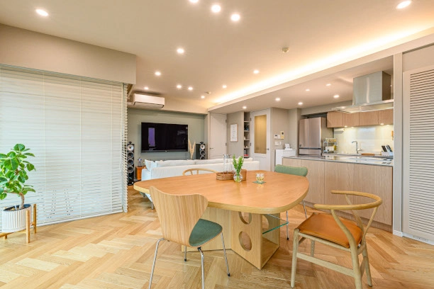 マンションでここまで⾃由に空間を作れることに驚きました。キッチンの配置や収納の⼯夫など、使う側の視点に⽴った細やかな気配りが随所に感じられます。仕上がりのイメージも美しく、安⼼してお任せできました。