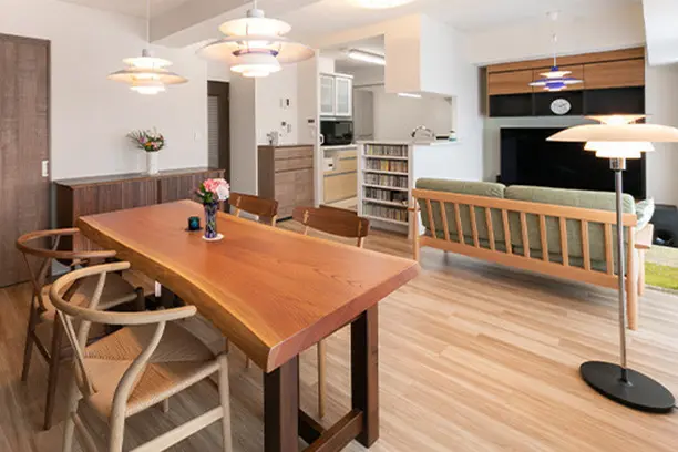 間仕切りが多くて狭かった以前の住まいから、明るく開放的な空間へと⽣まれ変わり、⽇々の暮らしが格段に快適になりました。リビングで⾳楽を楽しみながらワインを味わうひとときは、まさに理想の時間です。細かな要望にも丁寧に対応していただき、⾃分らしい空間が実現できたことに感謝しています。