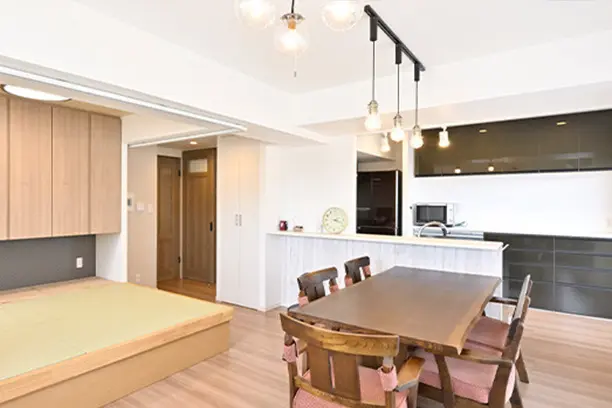 リフォームを終えて「こんなに広くなったの!?」と驚きました。とくにダイニング、和室、キッチンの開放感がお気に入りです。夫婦それぞれに個室がありつつ、子どもたちや友人が遊びに来ても広く使うことができるのがうれしいです。全体を通してデザイン性が高く、和室の琉球畳や吊り戸などプランナーさんがいろ提案してくださったのもよかったです。また、床下の配管を刷新できたことと、個人的な健康チェックのために入れてもらったクロスのラインがインテリアに馴染んだことも安心しまた。皆さんにおすすめしてまわりたいくらい、想像以上に満足のいくリフォームになりました。